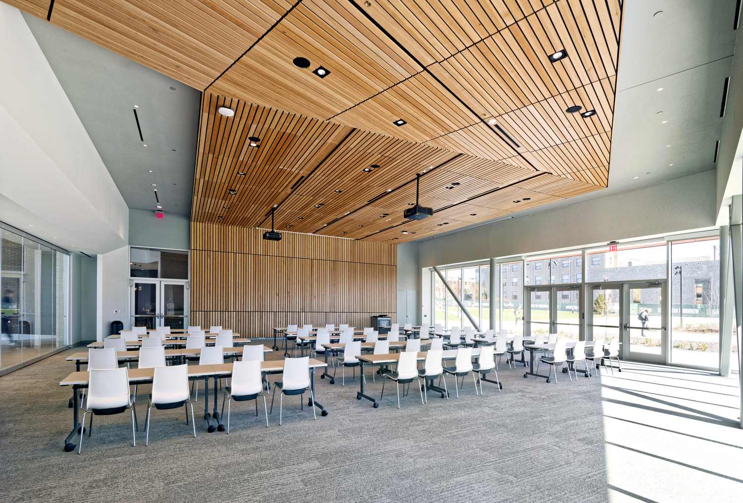 The facility offers open and enclosed meeting spaces, a multipurpose room, coffee shop, maker space, and dedicated areas for student success and support. Located south of the Havener Center and connected by a sky bridge, the two-story building strengthens the campus core and expands access to programs and activities. The basement houses S&T’s fourth geothermal plant, advancing the University’s sustainability goals.